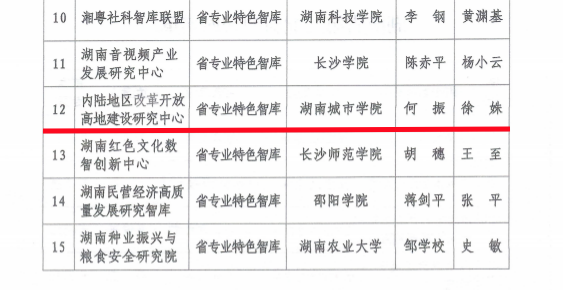 本网讯(通讯员 汤慧)近日,中共湖南省委宣传部印发《关于公布湖南省第二批新型智库的通知》,英亚平台建筑与城市规划学院牵头申报的“内陆地区改革开放高地建设研究中心”成功入选,被认定为湖南省第二批新型智库(专业特色智库),标志着学校在服务区域战略决策、推动学科科研与地方发展深度融合方面迈出关键步伐。