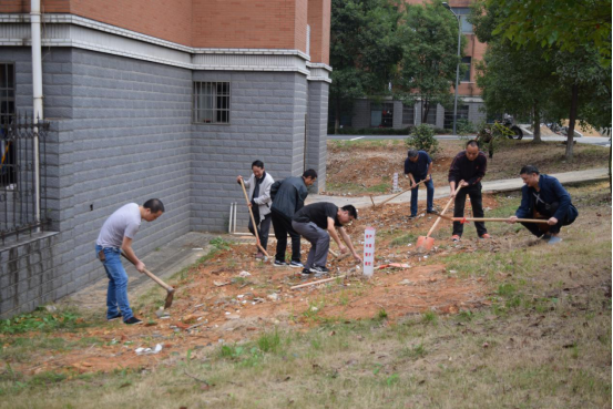 学习结束后,支部还组织开展了平整学生公寓周边土坡,清理白色垃圾、杂物的义务劳动。